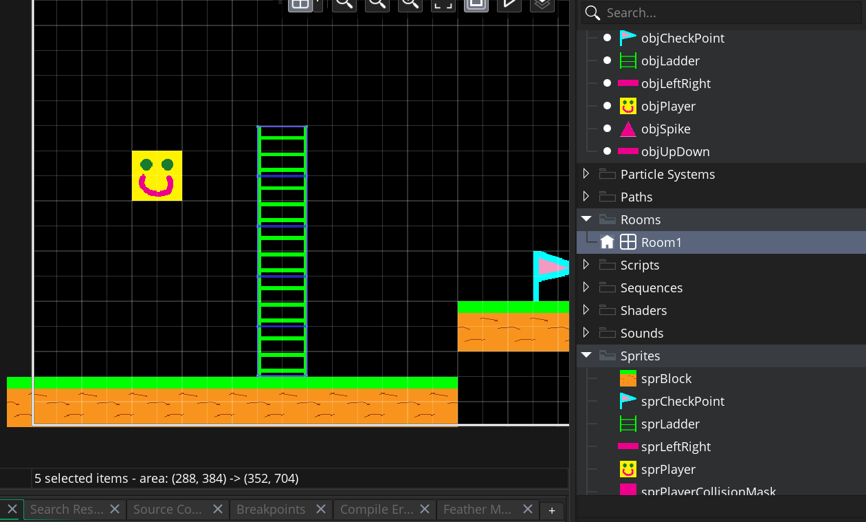 grav = 1; horiz = 0; vert = 0; move_speed = 7; jump_speed = -15; frict = 0.9; //new variables for adding ladders: on_ladder = false; ladder_climb_speed = move_speed div 2;
